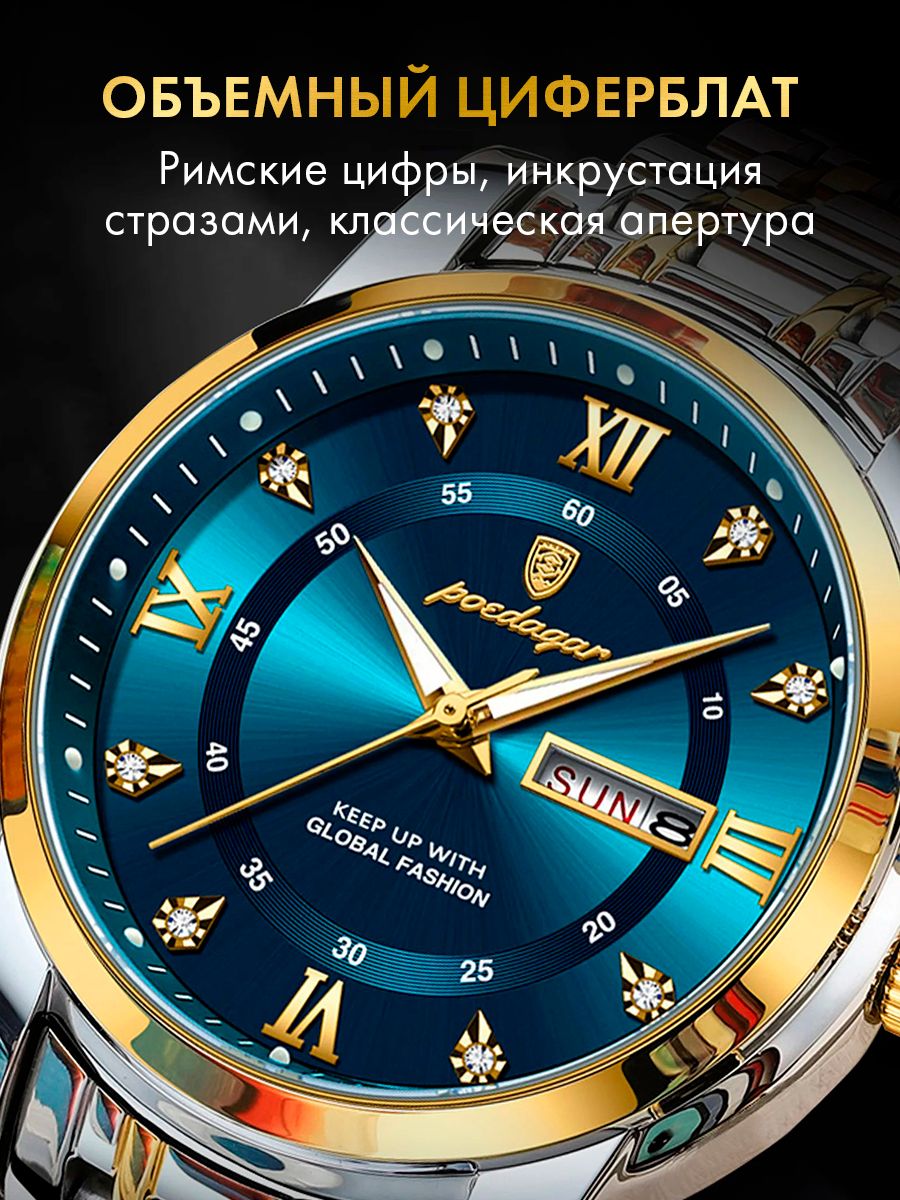 Часы в стиле классика с золотыми вставками стоит подарить близкому человеку в знак внимания – отцу, лучшему другу, зятю, мужу, сыну, брату. Поводом для подарка может стать любая важная дата – новогодние праздники, День святого Валентина, 23 февраля, повышение на работе, день рождения, годовщина отношений. В наборе предоставляется подарочная коробка для защиты аксессуара от повреждений. Бокс от любимой женщины (дочки, жены, сестры) или друзей вызовет у получателя теплые эмоции и запомнится надолго.
