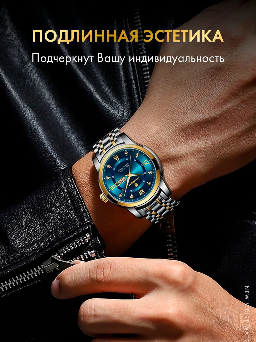 Мужские наручные часы удобно сидят на запястье. Ремень из металла с украшением серебром и золотом, а водонепроницаемый ударопрочный циферблат со стрелками инкрустирован стразами. Механические часики оборудованы кварцевым механизмом, а это максимальная точность хода. Ретро браслет подойдет для офиса и занятий спортом. Классический дизайн хорошо подходит для подростков.