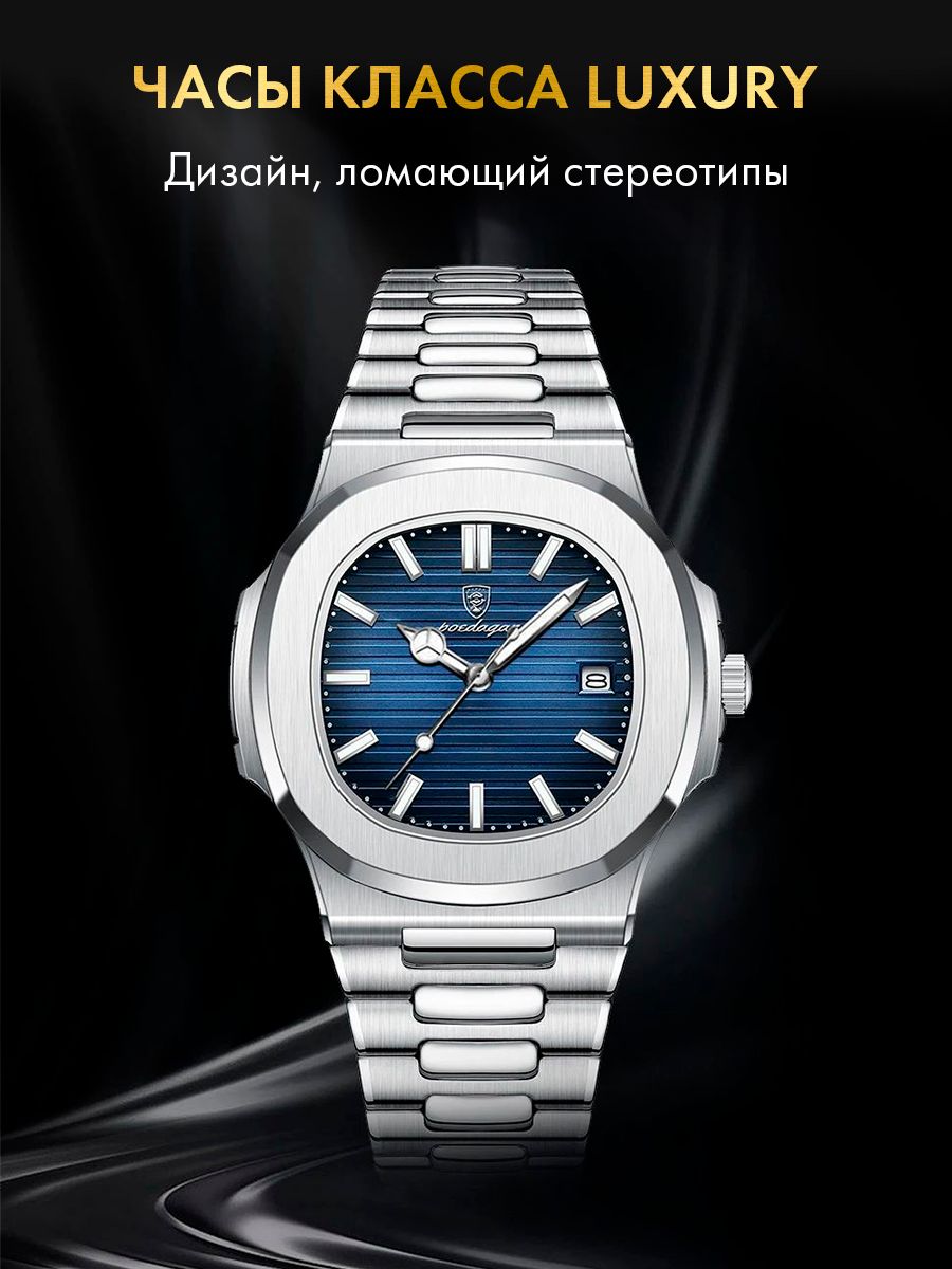 Мужские наручные часы привлекают внимание строгим классическим дизайном, высоким качеством сборки и точностью хода. Несмотря на внешнюю массивность, они практически не ощущаются на руке. Прочный корпус позволяет брать аксессуар на фитнес и бег, а водонепроницаемые свойства делают возможным его использование во время занятий водными видами спорта.