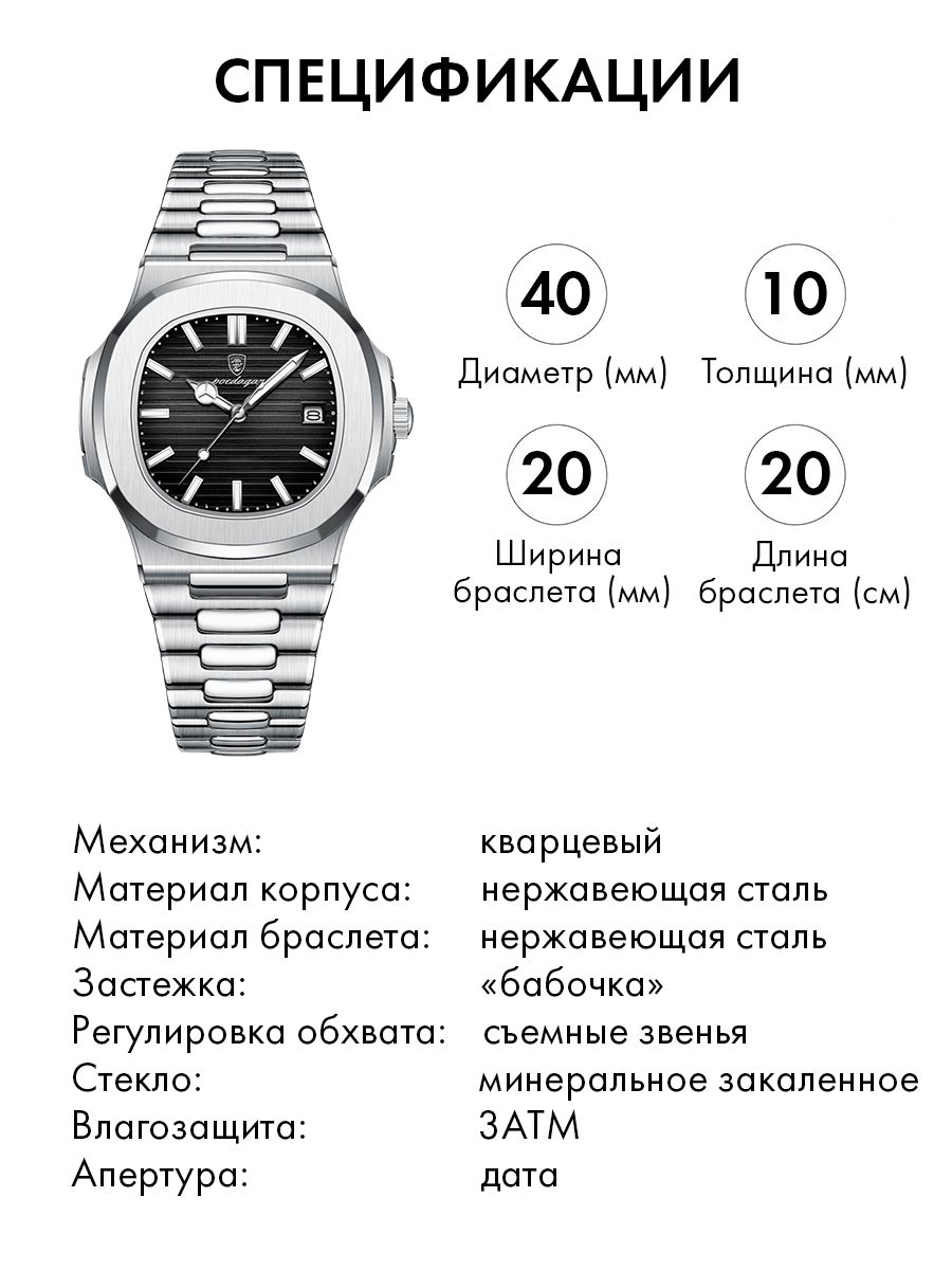 Мужские наручные часы привлекают внимание строгим классическим дизайном, высоким качеством сборки и точностью хода. Несмотря на внешнюю массивность, они практически не ощущаются на руке. Прочный корпус позволяет брать аксессуар на фитнес и бег, а водонепроницаемые свойства делают возможным его использование во время занятий водными видами спорта.