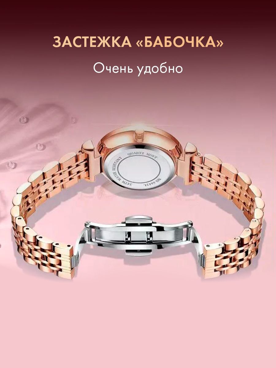 Часы женские кварцевые PASSION 366 c браслетом замок бабочка (розовое золото)