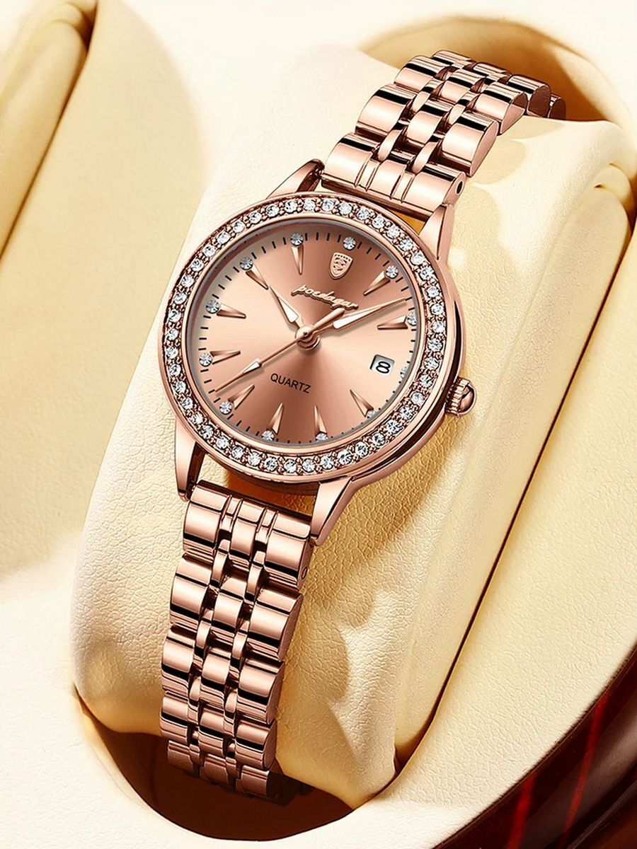 Женские наручные часы удобно сидят на запястье. Ремень из металла с украшением серебром и золотом, а водонепроницаемый ударопрочный циферблат со стрелками инкрустирован стразами. Механические часики оборудованы кварцевым механизмом, а это максимальная точность хода. Ретро браслет подойдет для офиса и занятий спортом. Классический дизайн хорошо подходит для подростков, молодых девушек и взрослых женщин.