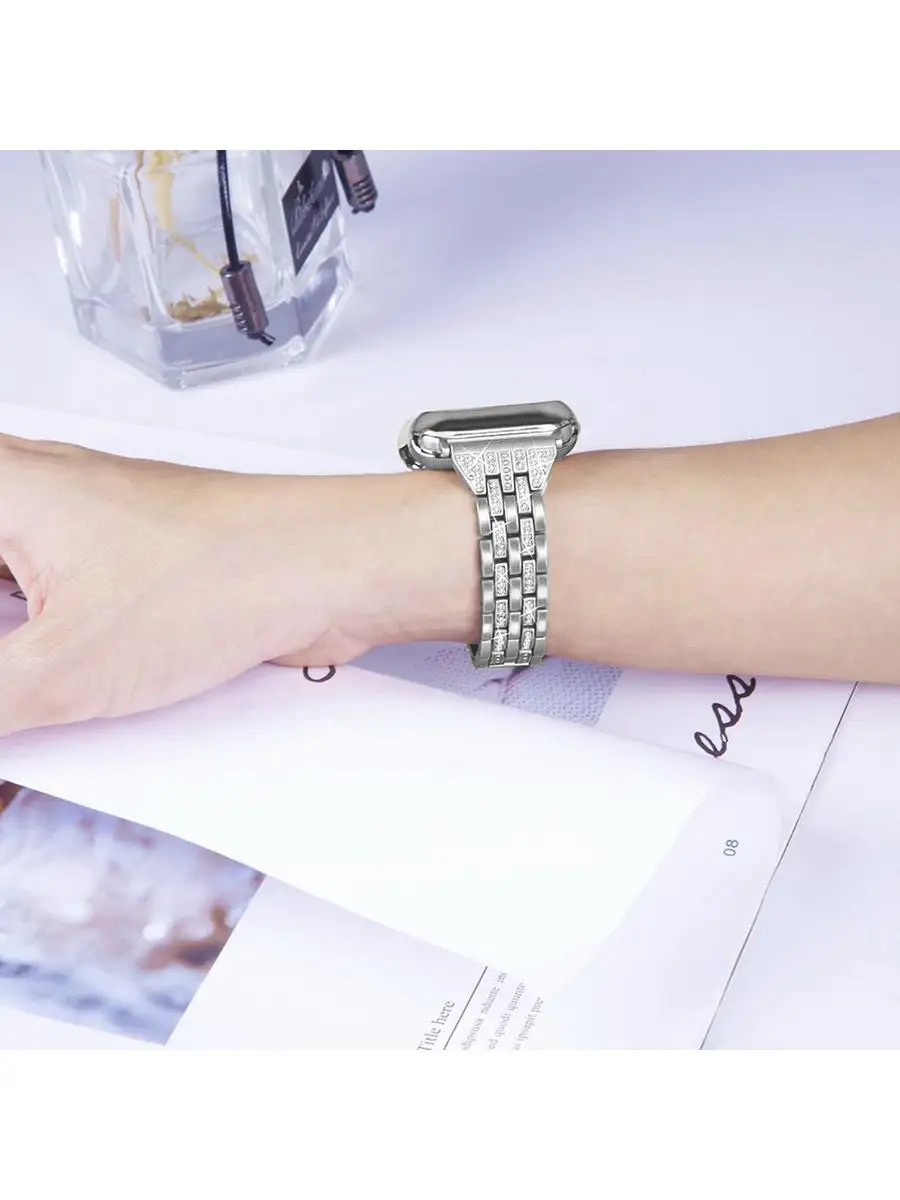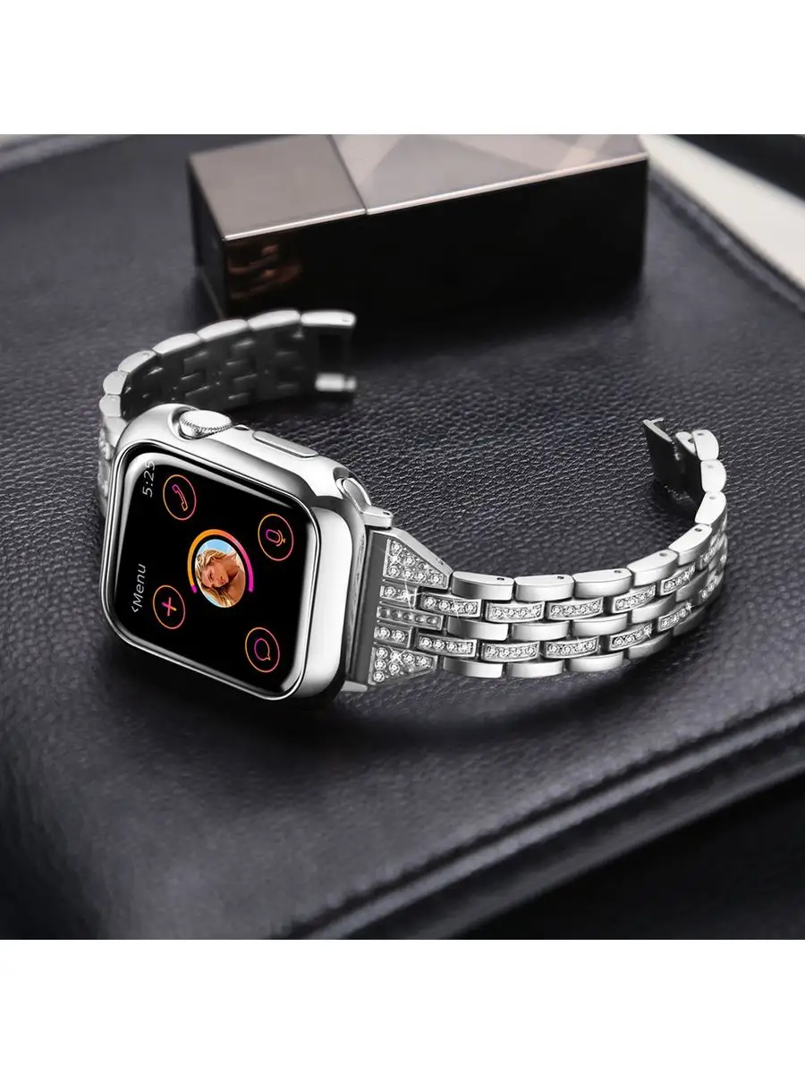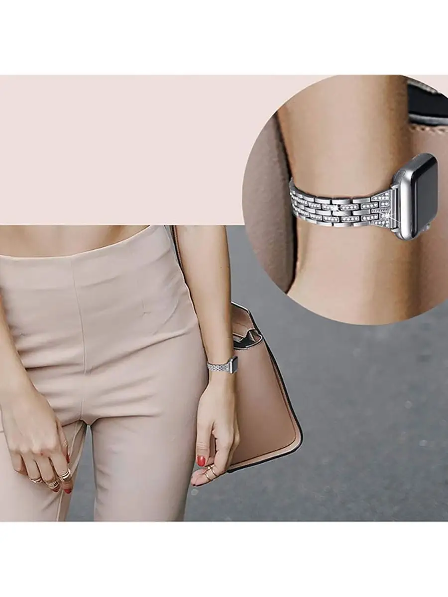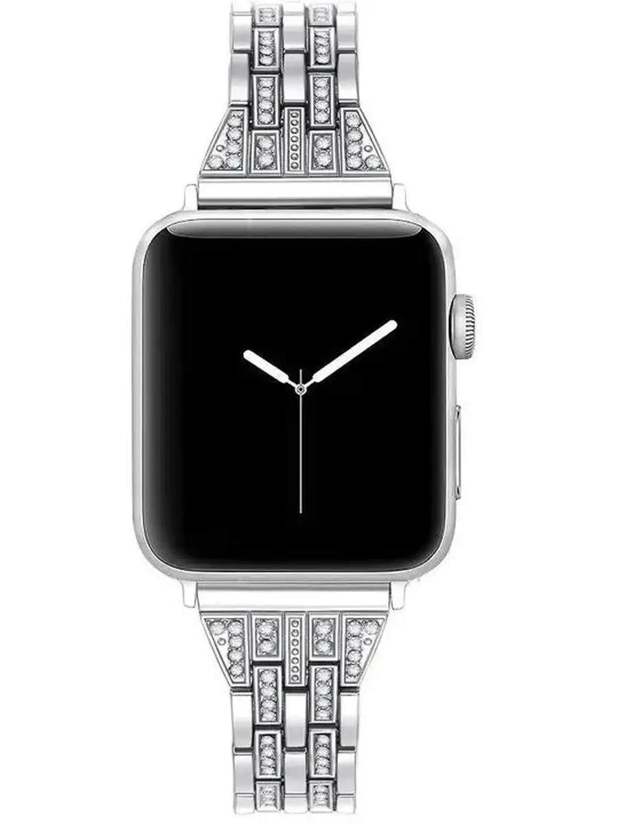 Ремешок для Apple Watch 38 40 41 мм – это стильный и элегантный аксессуар, который добавит изысканности вашим часам Apple Watch. Этот ремешок подходит для любых генераций с размерами корпуса 38 мм, 40 мм и 41 мм.Особенностью этого ремешка является его украшение стразами, которые придают ему блеск и привлекательность. Крупные стразы расположены на металлическом браслете, создавая эффектный и изысканный вид.Длина ремешка регулируется, что позволяет подогнать его под любой размер запястья. Благодаря съемным фиксаторам Apple Watch, установка и снятие ремешка происходит легко и быстро.Ремешок выполнен из качественных материалов, обеспечивающих долговечность и комфорт при ношении. Съемные звенья позволяют также настроить его по своим предпочтениям и получить оптимальную посадку на запястье.Этот ремешок для часов является отличным выбором для тех, кто хочет добавить нотку роскоши и стиля своим умным часам. Он подходит как для повседневного использования, так и для особых мероприятий, когда вы хотите выглядеть особенно элегантно.Не упустите возможность придать вашим смарт-часам новый облик с помощью этого великолепного ремешка со стразами. Покупайте его прямо сейчас и наслаждайтесь стильным и уникальным аксессуаром на вашем запястье. Все браслеты для часов PARASMART проходят проверку качества и обеспечиваются гарантией.