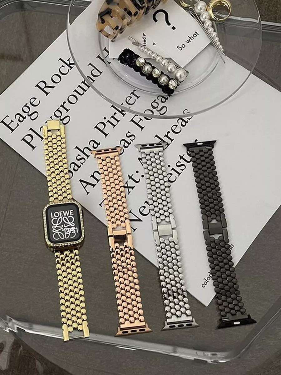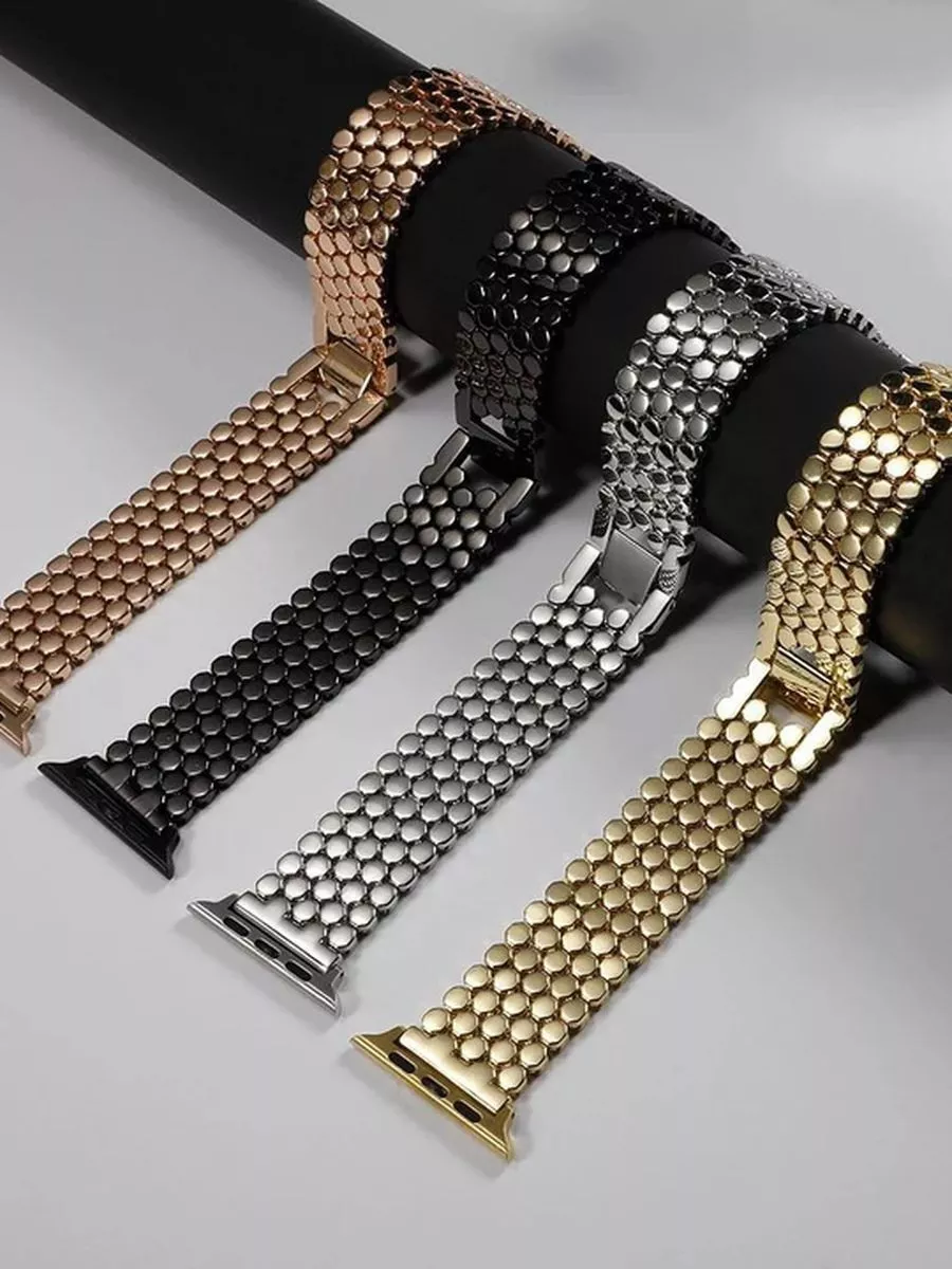 Не знаете, как улучшить внешний вид своего Apple Watch? Мы знаем, что нужно! Наш металлический ремешок для Apple Watch - это идеальное решение для тех, кто хочет придать своим часам новый стиль и класс. Наш ремешок для Apple Watch идеально подходит для моделей 44mm, 40mm, 45mm, и 38mm и обеспечивает легкую и удобную посадку на руку. Изготовленный из высококачественных материалов, наш ремешок обеспечивает надежность и долговечность. Этот металлический ремешок для Apple Watch также является универсальным и подходит для любого образа и события. Он прекрасно сочетается с любыми видами одежды и обуви, от повседневной одежды до деловых нарядов. Наш браслет на часы Apple Watch также является идеальным подарком для тех, кто хочет придать своим часам новый облик. Добавьте стиль и класс в свою жизнь с нашим металлическим ремешком для Apple Watch. Не забудьте, что наш металлический ремешок для Apple Watch является лучшим выбором для обновления вашего часового аксессуара, поэтому не упустите свой шанс. Закажите сегодня и получите уникальный и стильный аксессуар для своих часов Apple Watch.