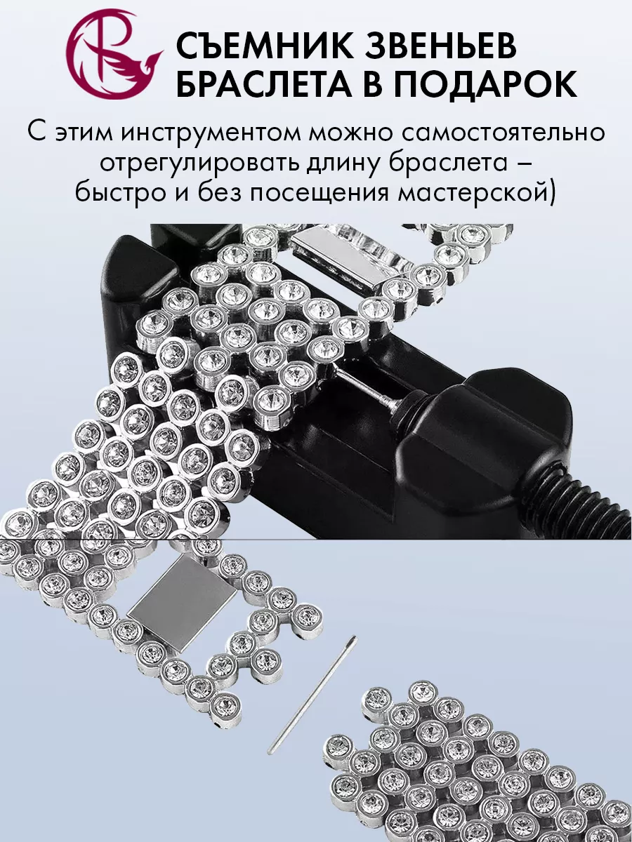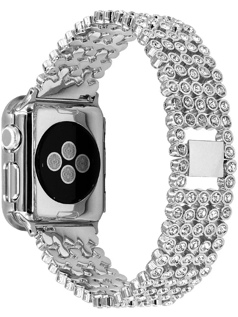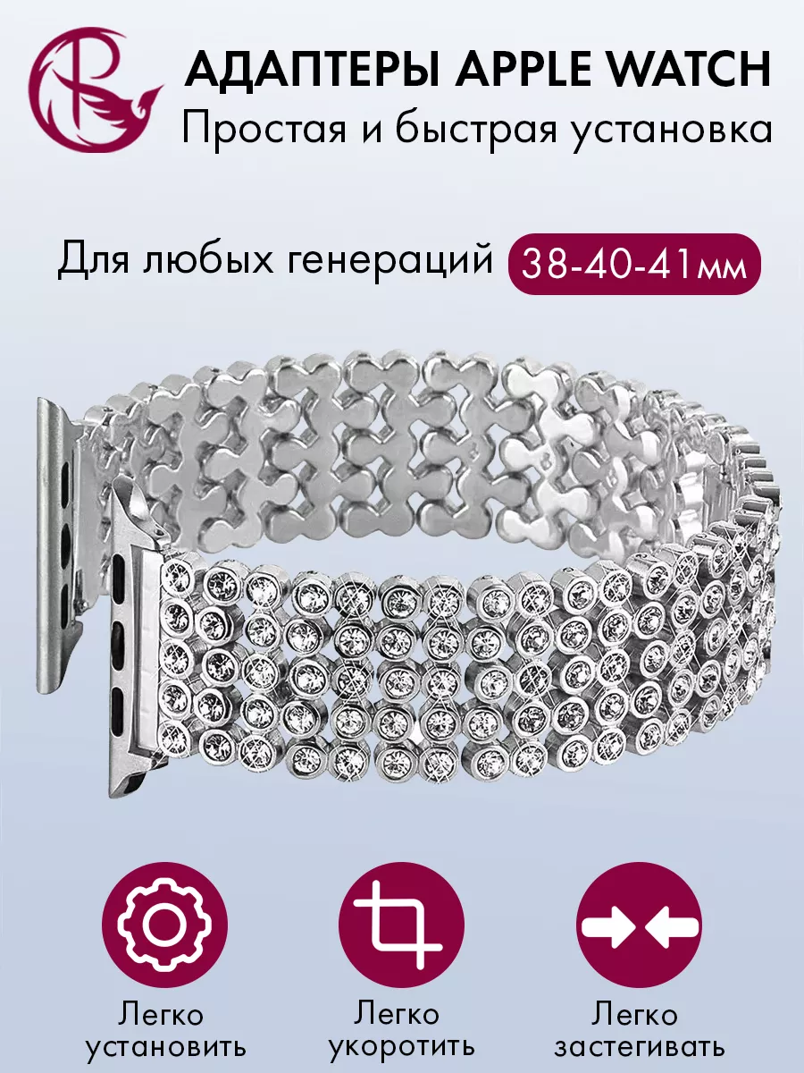 Ремешок для Apple Watch 38 40 41 мм – это стильный и элегантный аксессуар, который добавит изысканности вашим часам Apple Watch. Этот ремешок подходит для любых генераций с соответствующими размерами корпуса.Особенностью этого ремешка является его украшение стразами, которые придают ему блеск и привлекательность. Крупные стразы расположены на металлическом браслете, создавая эффектный и изысканный вид.Длина ремешка регулируется, что позволяет подогнать его под любой размер запястья. Благодаря съемным фиксаторам Apple Watch, установка и снятие ремешка происходит легко и быстро.Ремешок выполнен из качественных материалов, обеспечивающих долговечность и комфорт при ношении. Съемные звенья позволяют также настроить его по своим предпочтениям и получить оптимальную посадку на запястье.Этот ремешок для часов является отличным выбором для тех, кто хочет добавить нотку роскоши и стиля своим умным часам. Он подходит как для повседневного использования, так и для особых мероприятий, когда вы хотите выглядеть особенно элегантно.Не упустите возможность придать вашим смарт-часам новый облик с помощью этого великолепного ремешка со стразами. Покупайте его прямо сейчас и наслаждайтесь стильным и уникальным аксессуаром на вашем запястье. Все браслеты для часов PARASMART проходят проверку качества и обеспечиваются гарантией.