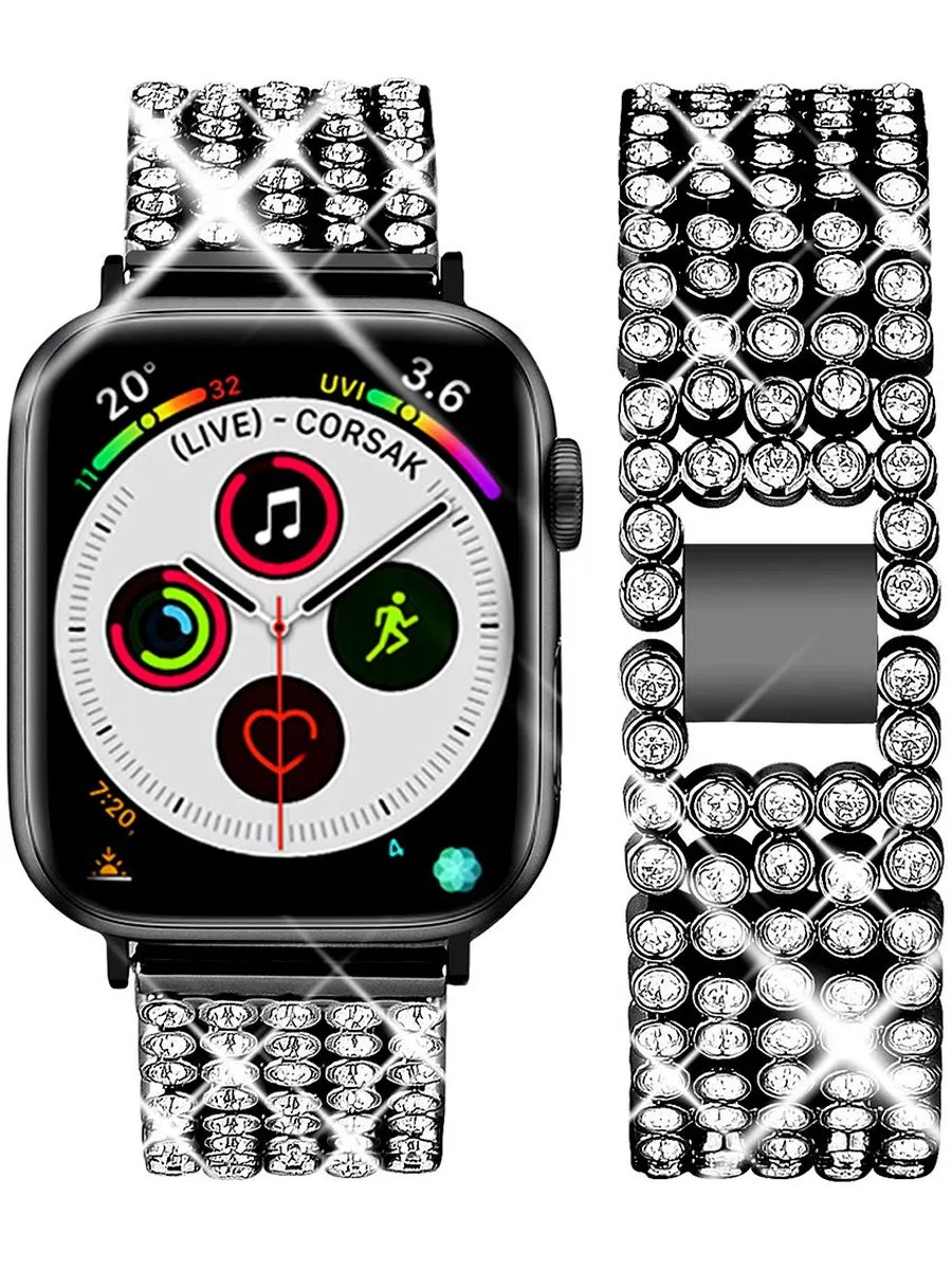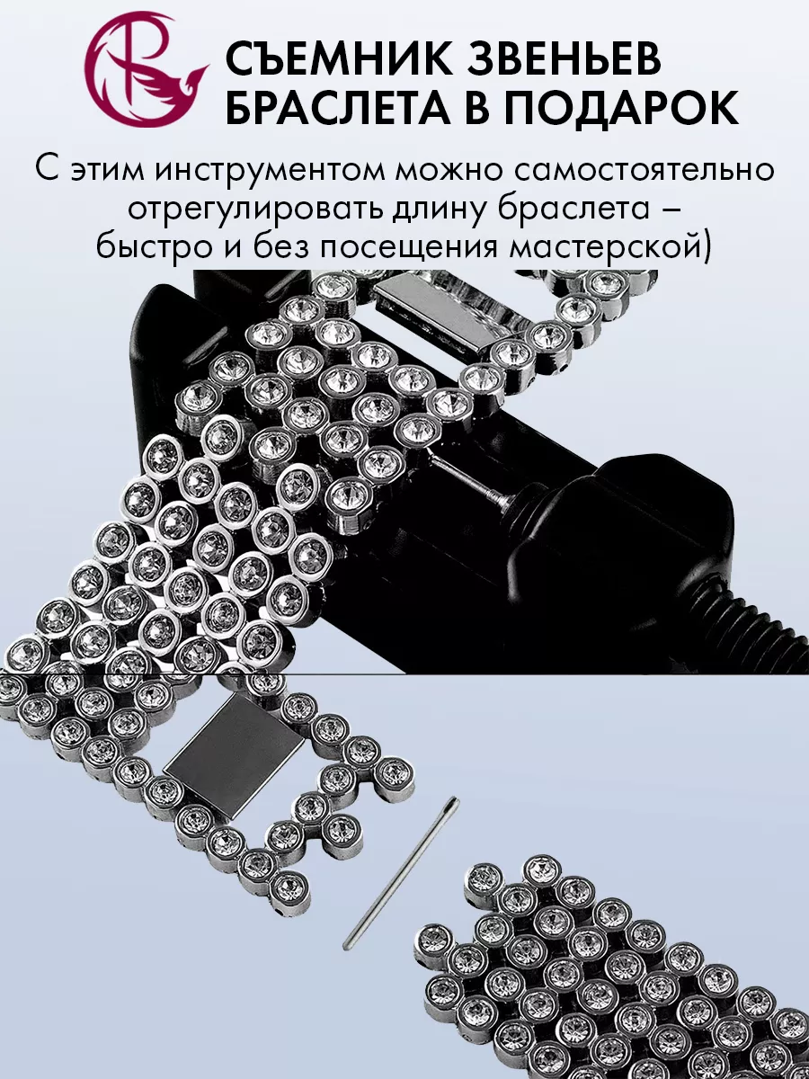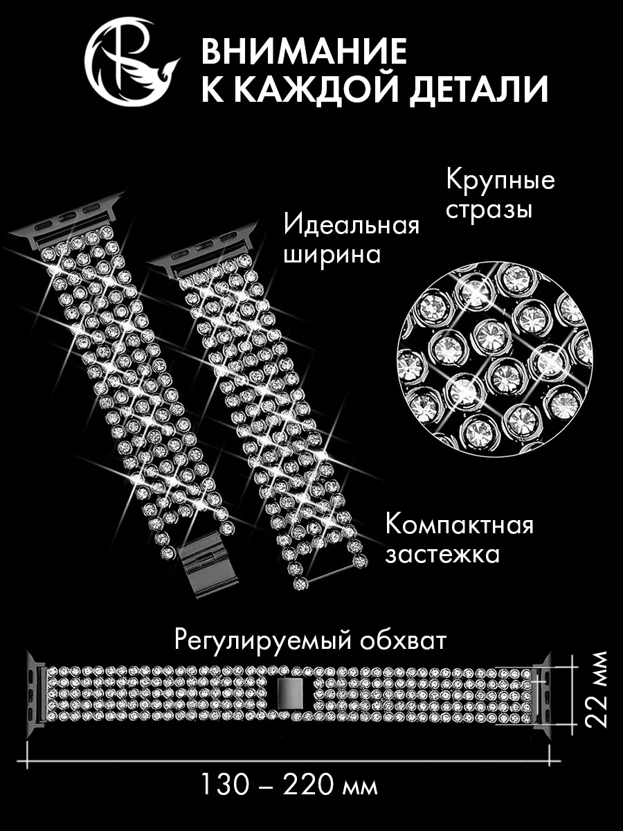 Ремешок для Apple Watch 42 44 45 49 мм – это стильный и элегантный аксессуар, который добавит изысканности вашим часам Apple Watch. Этот ремешок подходит для любых генераций с размерами корпуса 42 мм, 44 мм, 45 мм и 49 мм Ultra.Особенностью этого ремешка является его украшение стразами, которые придают ему блеск и привлекательность. Крупные стразы расположены на металлическом браслете, создавая эффектный и изысканный вид.Длина ремешка регулируется, что позволяет подогнать его под любой размер запястья. Благодаря съемным фиксаторам Apple Watch, установка и снятие ремешка происходит легко и быстро.Ремешок выполнен из качественных материалов, обеспечивающих долговечность и комфорт при ношении. Съемные звенья позволяют также настроить его по своим предпочтениям и получить оптимальную посадку на запястье.Этот ремешок для часов является отличным выбором для тех, кто хочет добавить нотку роскоши и стиля своим умным часам. Он подходит как для повседневного использования, так и для особых мероприятий, когда вы хотите выглядеть особенно элегантно.Не упустите возможность придать вашим смарт-часам новый облик с помощью этого великолепного ремешка со стразами. Покупайте его прямо сейчас и наслаждайтесь стильным и уникальным аксессуаром на вашем запястье. Все браслеты для часов PARASMART проходят проверку качества и обеспечиваются гарантией.