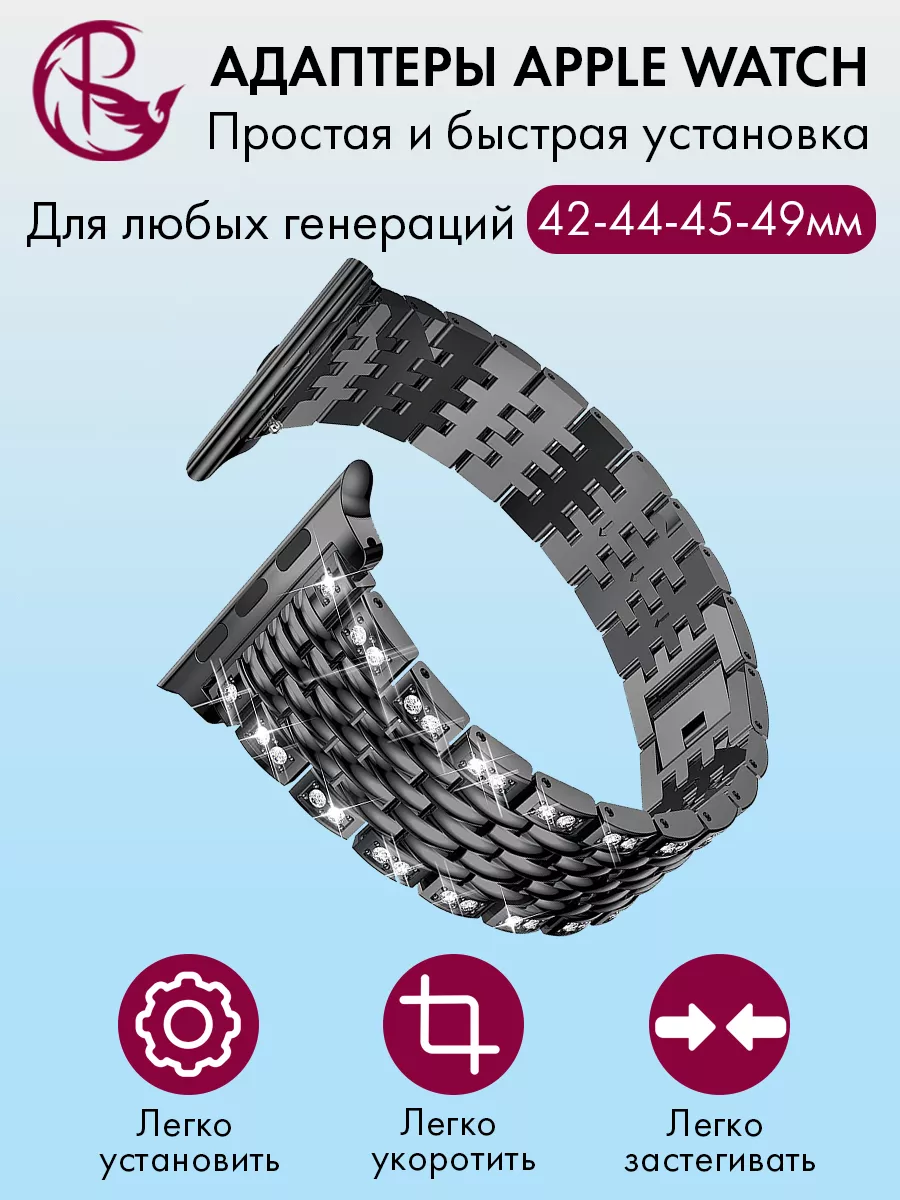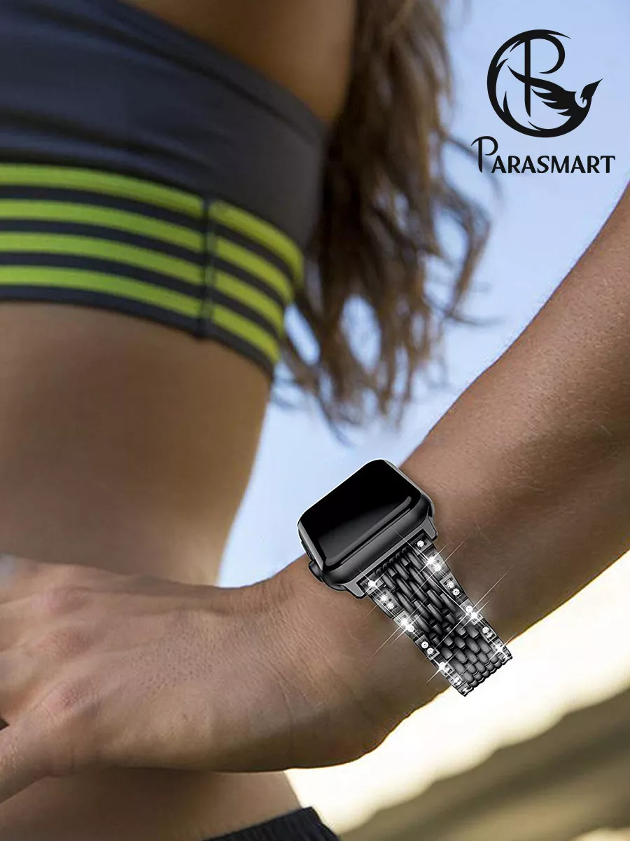 Браслет для часов — это стильный и функциональный аксессуар, который превратит ваш Apple Watch в настоящий модный акцент. Этот ремешок изготовлен из высококачественной нержавеющей стали, что гарантирует его долговечность и устойчивость к повреждениям.Модель PARASMART Sharm отличается особым дизайном, благодаря которому ремешок выглядит элегантно и привлекательно. На нем расположены кристаллы-стразы, которые придают ему шикарный блеск и делают его по-настоящему уникальным.Ремешок оснащен адаптерами, которые позволяют легко и быстро установить его на ваше устройство. Благодаря этому вы сможете быстро менять ремешки в зависимости от вашего настроения или стиля одежды.Удобная застежка обеспечивает надежную фиксацию на запястье и не позволяет ему соскальзывать или ослабевать в процессе использования. Вы можете быть уверены в том, что ваши смарт-часы будут надежно закреплены и не потеряются.Ремешок со стразами, в металлическом исполнении —это отличный выбор для тех, кто хочет добавить немного роскоши и стиля в свою повседневную жизнь. Приобретите этот очаровательный ремешок и вы будете выглядеть модно и элегантно в любой ситуации.