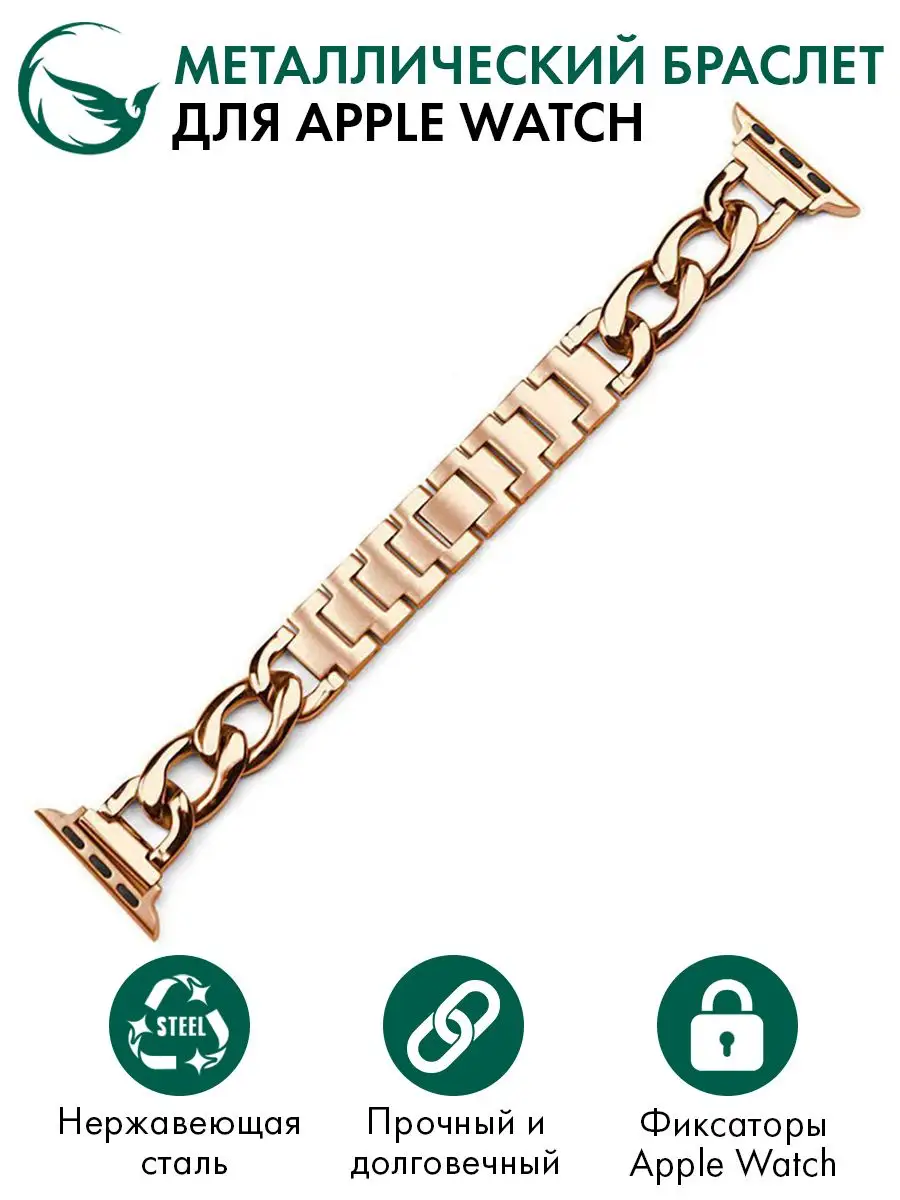 Не знаете, как улучшить внешний вид своего Apple Watch? Мы знаем, что нужно! Наш металлический ремешок для Apple Watch - это идеальное решение для тех, кто хочет придать своим часам новый стиль и класс. Наш ремешок для Apple Watch идеально подходит для моделей 44mm, 40mm, 45mm, и 38mm и обеспечивает легкую и удобную посадку на руку. Изготовленный из высококачественных материалов, наш ремешок обеспечивает надежность и долговечность. Этот металлический ремешок для Apple Watch также является универсальным и подходит для любого образа и события. Он прекрасно сочетается с любыми видами одежды и обуви, от повседневной одежды до деловых нарядов. Наш браслет на часы Apple Watch также является идеальным подарком для тех, кто хочет придать своим часам новый облик. Добавьте стиль и класс в свою жизнь с нашим металлическим ремешком для Apple Watch. Не забудьте, что наш металлический ремешок для Apple Watch является лучшим выбором для обновления вашего часового аксессуара, поэтому не упустите свой шанс. Закажите сегодня и получите уникальный и стильный аксессуар для своих часов Apple Watch.