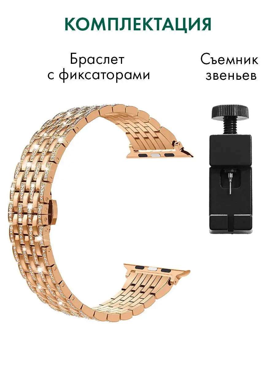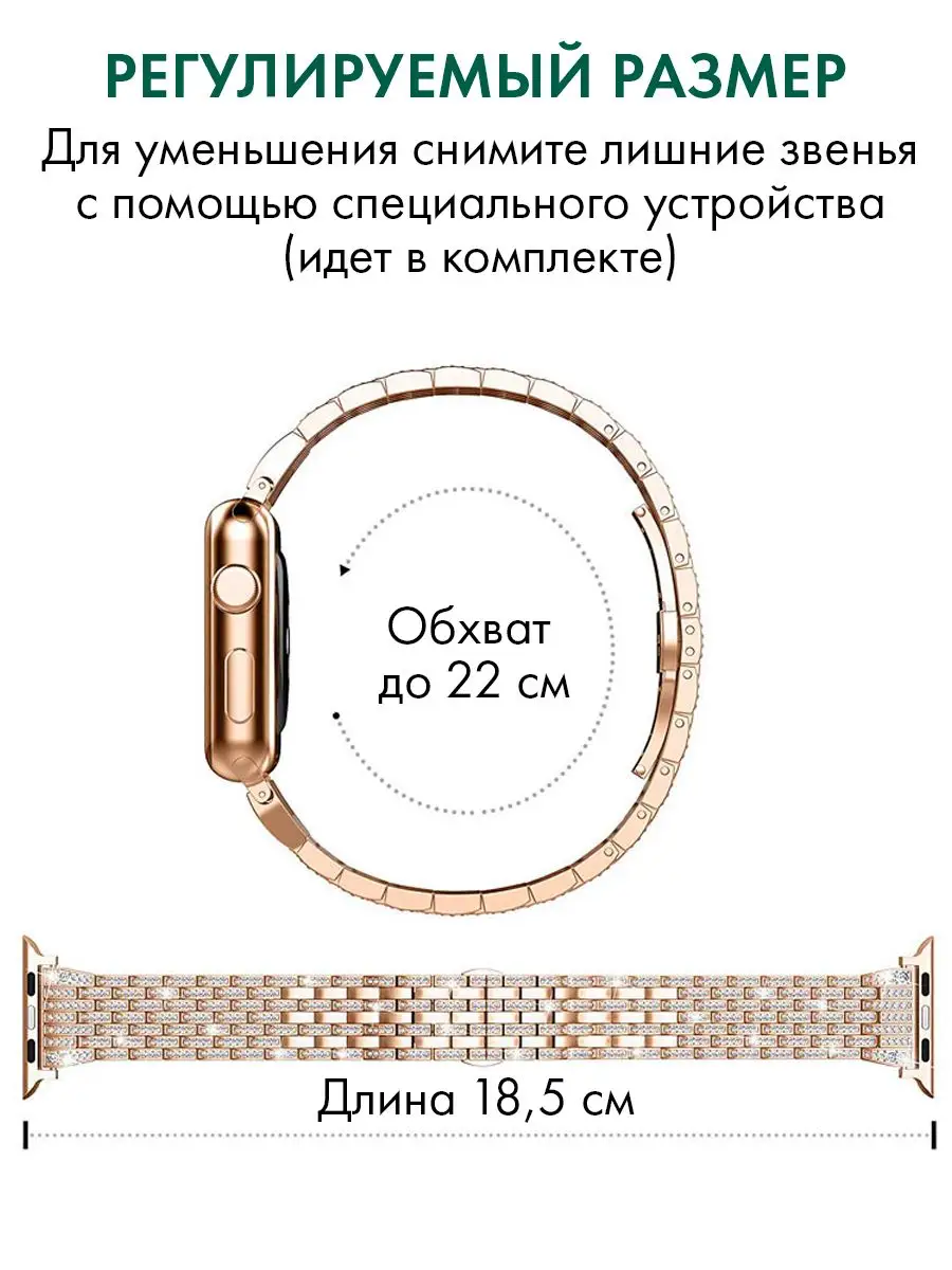 Если вы владелец Apple Watch, то вы знаете, как важно подобрать подходящий ремешок для вашего устройства. Наш металлический ремешок для Apple Watch - это идеальное решение для тех, кто ищет браслет, который сочетает в себе красоту и функциональность. Наш браслет для Apple Watch изготовлен из высококачественных материалов, что обеспечивает долгую и надежную работу. Он прекрасно подходит для повседневного использования, а также для специальных мероприятий и торжеств. Наш браслет для часов Apple Watch имеет уникальный дизайн, который подойдет как мужчинам, так и женщинам. Он обладает красивой отделкой со стразами, которые придают ему элегантный и изысканный вид. Этот браслет со стразами женский, но также будет выглядеть прекрасно на мужской руке. Наш ремешок для часов женский - это идеальное решение для тех, кто ищет красивый и функциональный аксессуар для своих часов. Он легкий и удобный в использовании, а также обладает высокой прочностью и долговечностью. Купить металлический ремешок для Apple Watch у нас - это значит получить качественный и надежный продукт, который будет служить вам на протяжении многих лет. Наш браслет для часов Apple Watch - это идеальное сочетание красоты и функциональности. Не упустите возможность приобрести его сейчас и подчеркнуть свой стиль!