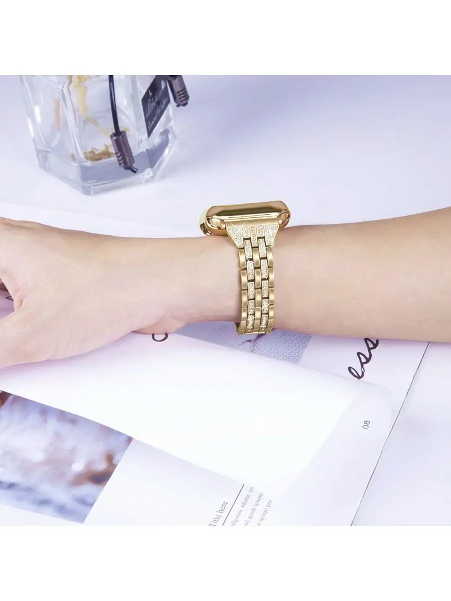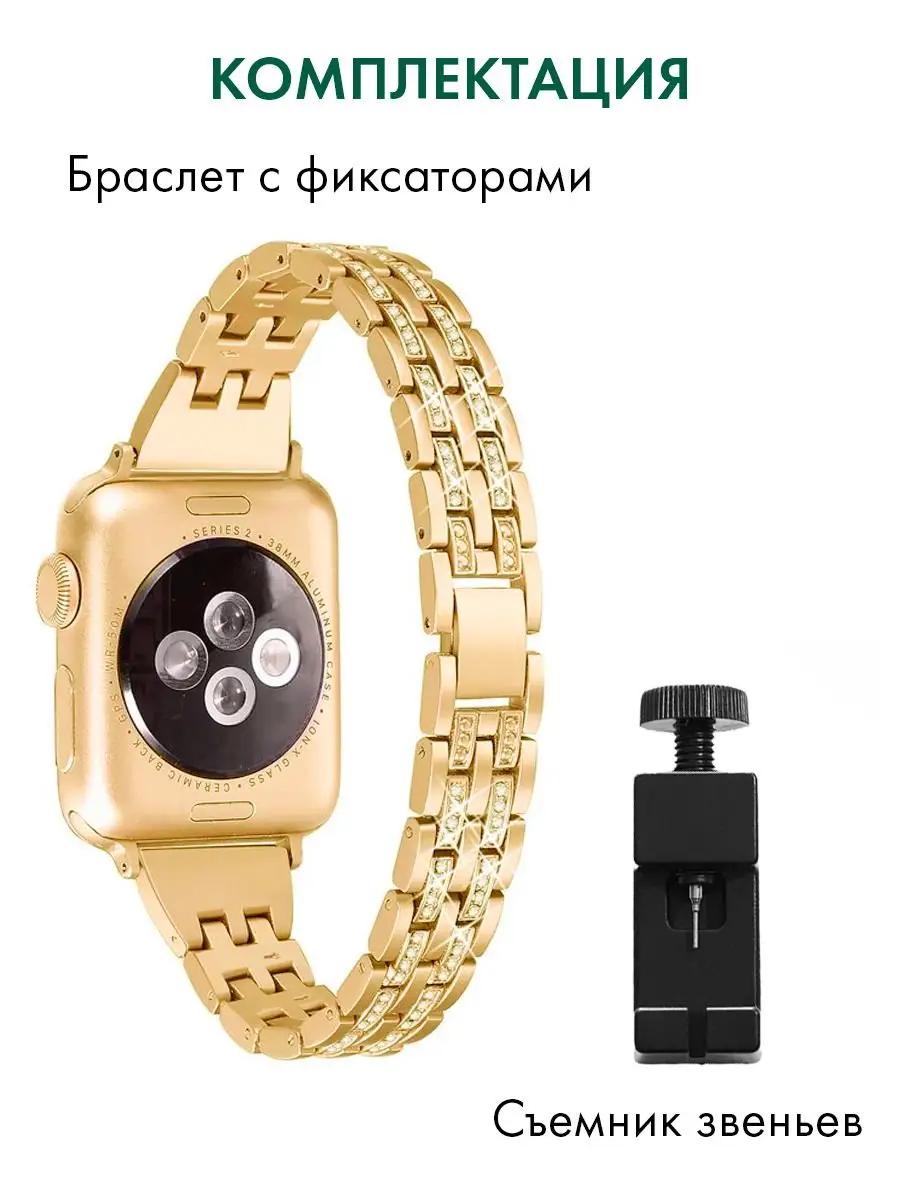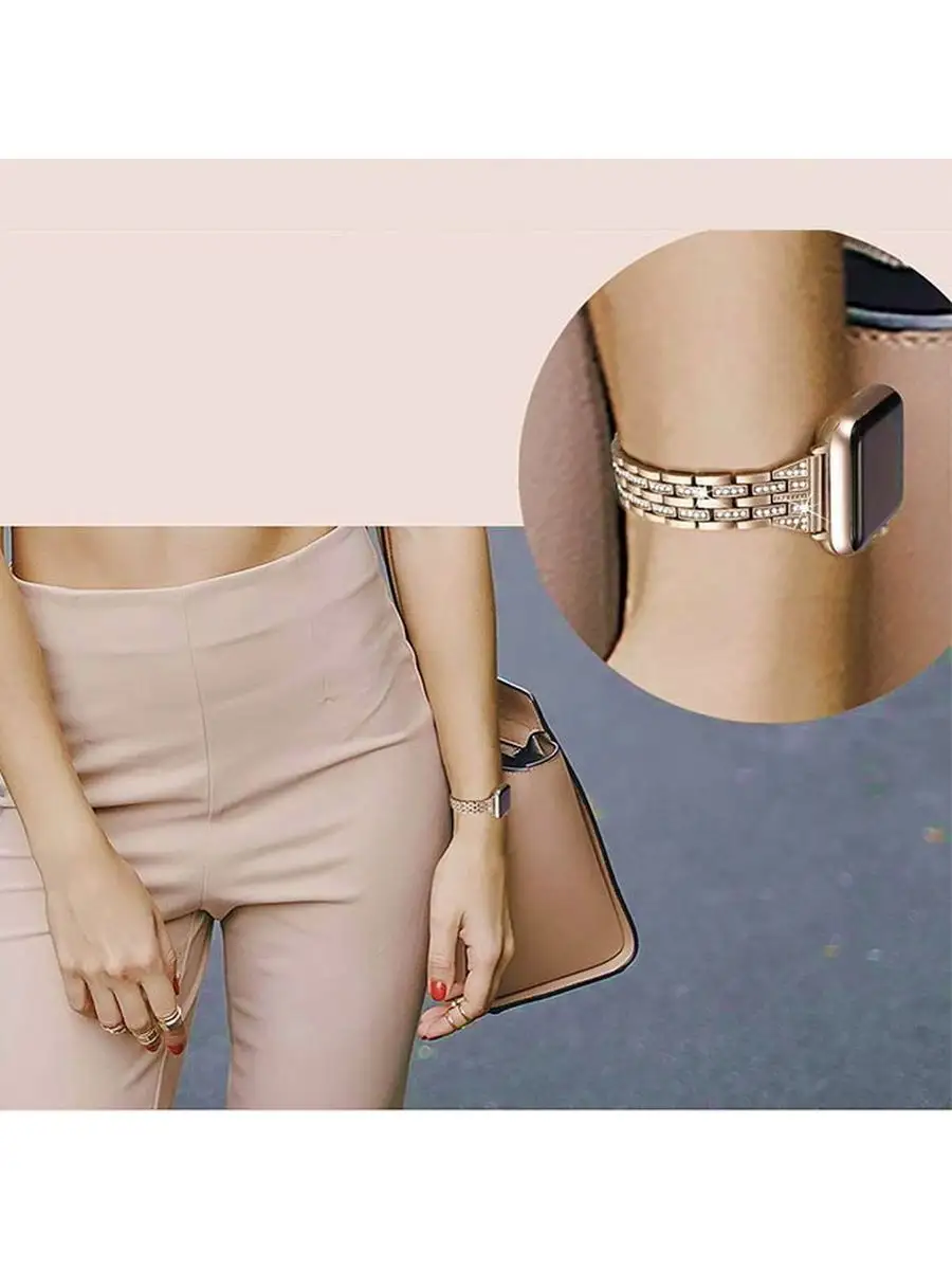 Наш металлический ремешок для Apple Watch - это модный и функциональный аксессуар, который подойдет как для мужчин, так и для женщин. Этот ремешок не только прекрасно сочетается с вашим Apple Watch, но и добавит яркий акцент к вашему стилю. Наш металлический ремешок для Apple Watch изготовлен из высококачественных материалов, что делает его долговечным и устойчивым к повреждениям. Он легко устанавливается и снимается, что позволяет быстро менять свой стиль в зависимости от настроения и события. Браслет для часов Apple Watch сделан из металла высокого качества, что делает его легким и прочным. Он прекрасно подходит для повседневного использования, а также для особых случаев, когда вам нужно выглядеть на все сто. Браслет со стразами - это прекрасный выбор для тех, кто хочет добавить немного блеска к своему образу. Он идеально подходит для вечерних мероприятий и праздников. Кристаллы, которыми украшен ремешок, сияют на солнце и привлекают внимание окружающих. Этот женский браслет со стразами - идеальный выбор для тех, кто хочет выглядеть стильно и элегантно. Он подойдет для любого возраста и любого стиля идеально подойдет для повседневного использования.В нашем магазине вы найдете широкий выбор браслетов для Apple Watch, которые подойдут для любого случая. Мы предлагаем только качественные и надежные товары, которые будут радовать вас долгое время. Покупайте наш металлический ремешок для Apple Watch и будьте в центре внимания в любой компании!