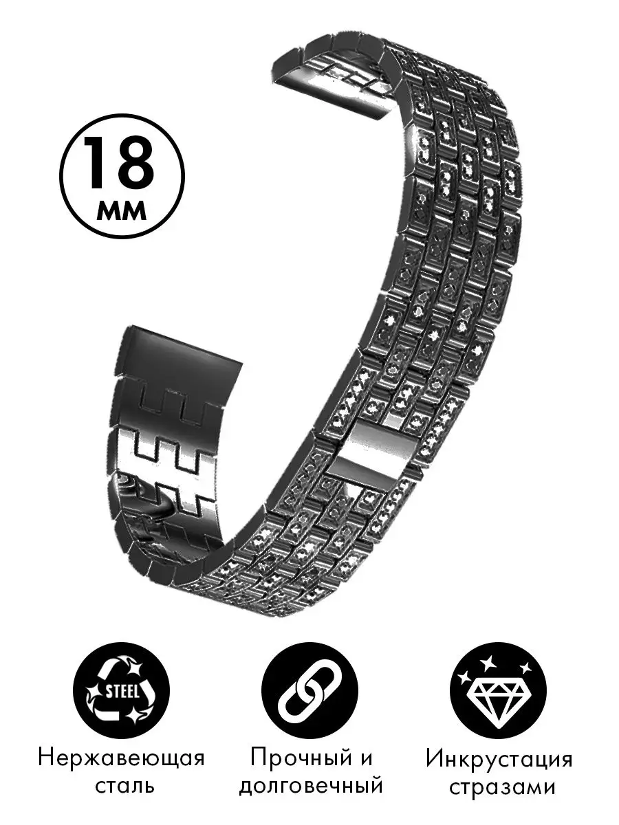 Элегантный металлический ремешок для часов шириной 18 мм станет вашим незаменимым аксессуаром. Украшенный стразами, он придаёт часам изысканный и современный вид. Этот браслет подходит для большинства смарт часов, включая модели от Xiaomi, Huawei, Samsung и других. Универсальное крепление на штифтах позволяет легко заменить старый ремешок на этот стильный аксессуар. Установка проста и не требует посещения мастерской: в комплекте идёт устройство-съемник, с помощью которого можно быстро снять лишние звенья и подогнать браслет под ваше запястье. Ремешок подходит как для женских, так и для мужских часов, что делает его универсальным решением. Если вы хотите добавить блеска и индивидуальности в свой образ, этот ремешок станет идеальным выбором. Он подчеркнёт ваш стиль и обеспечит комфортное ношение в течение всего дня. Убедитесь, что расстояние между дужками ваших часов составляет 18 мм, чтобы ремешок идеально подошёл. С таким аксессуаром ваши часы всегда будут выглядеть актуально и привлекательно, а вы будете чувствовать себя уверенно и стильно. Независимо от того, носите ли вы его с классическими или смарт часами, этот браслет всегда будет в центре внимания, добавляя вашему образу нотку элегантности и современности.
