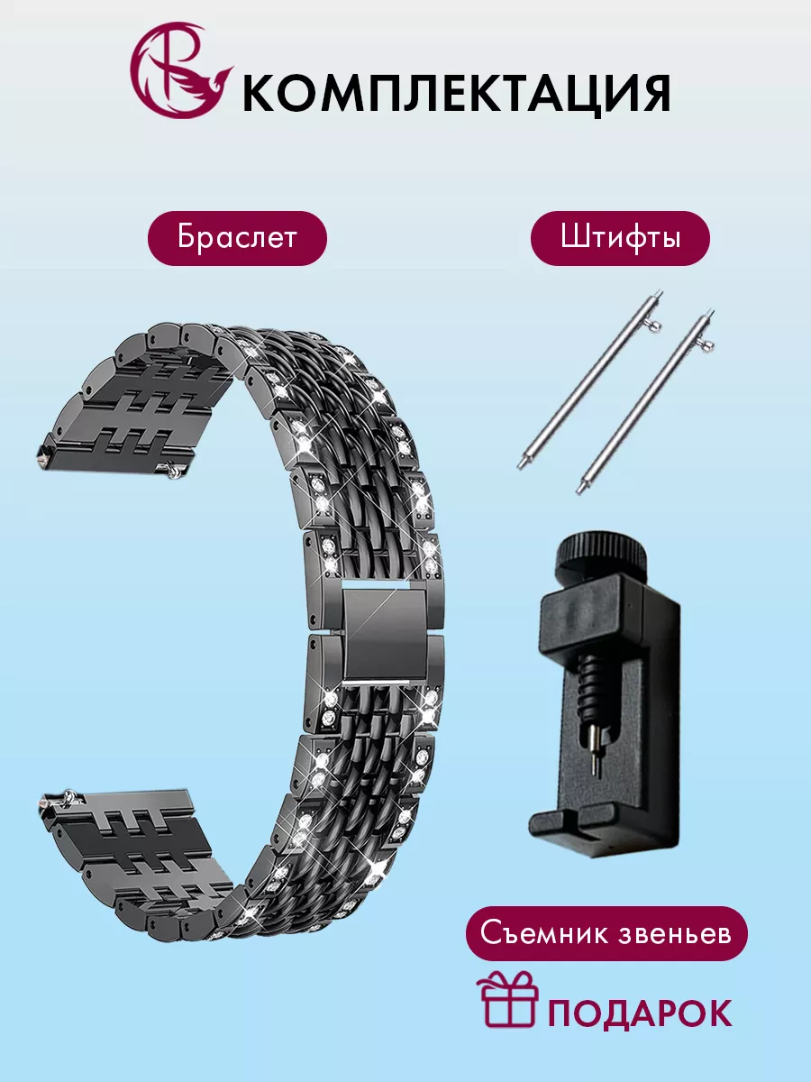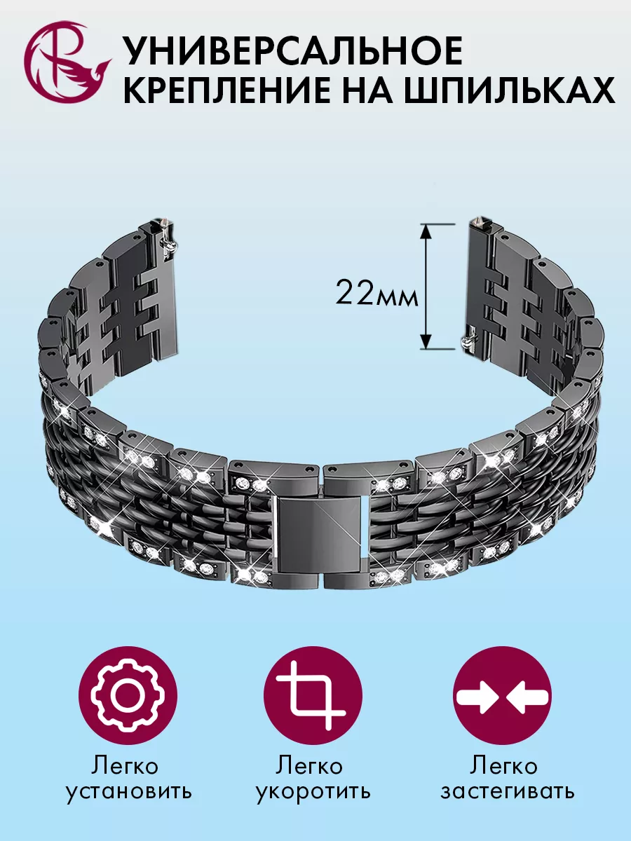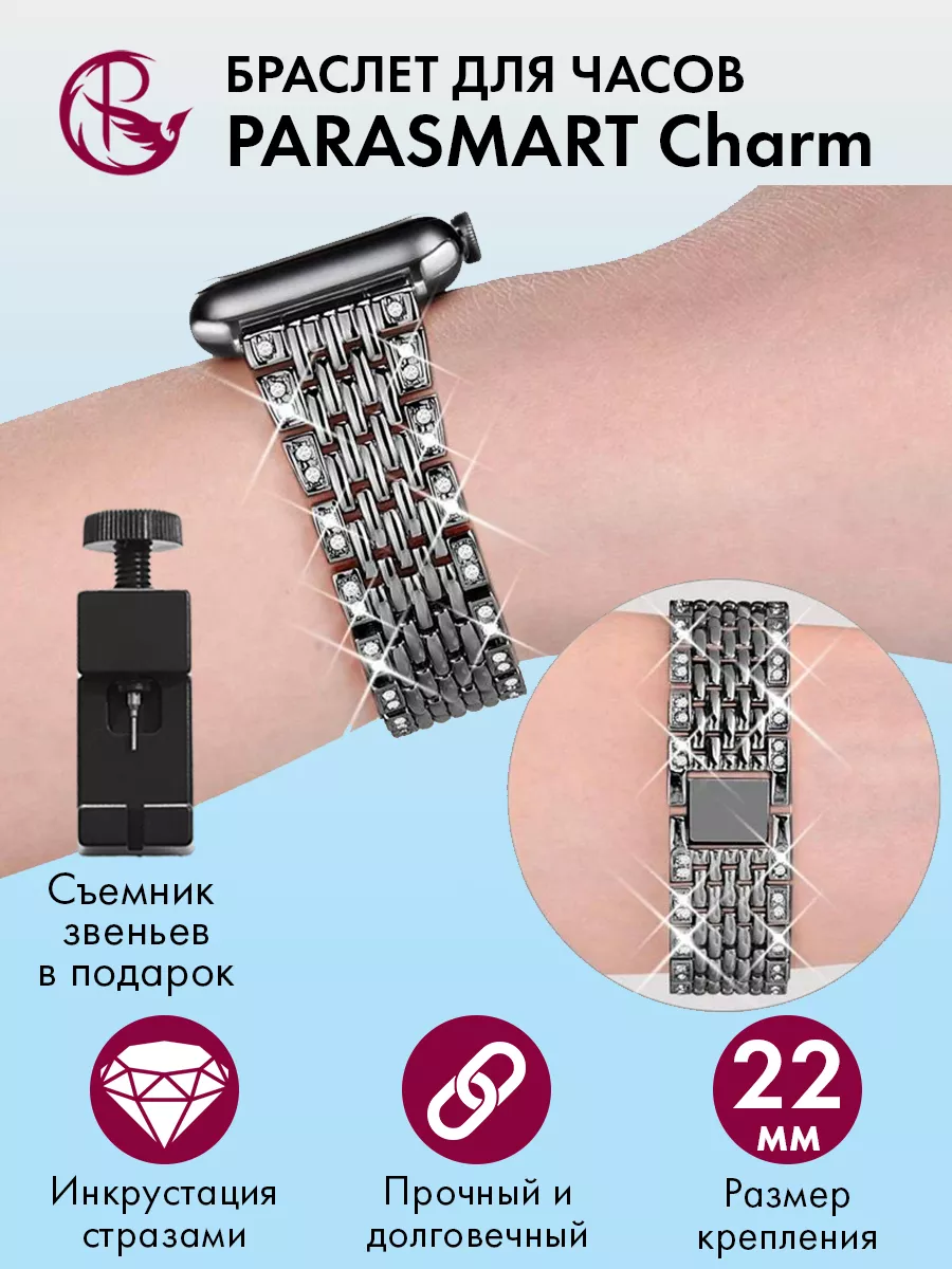 Ремешок для часов PARASMART Charm со стразами – это универсальный аксессуар, который подходит для любых моделей часов с шириной крепления 22 мм. Он обладает элегантным дизайном и привлекательным внешним видом благодаря инкрустации стразами.Этот ремешок выполнен из прочного и надежного металла, что обеспечивает долгую службу и устойчивость к повреждениям. Крепление на шпильках гарантирует простоту установки и надежную фиксацию на корпусе ваших часов.Регулируемая длина ремешка позволяет подстроить его под вашу индивидуальную потребность, обеспечивая комфортное ношение. Это делает его идеальным выбором как для смарт-часов, так и для наручных часов.Благодаря своей универсальности, этот ремешок подходит для различных стилей одежды и событий. Он придаст вашим часам изысканный вид и добавит шик в ваш образ.Если вы хотите придать своим часам новый облик и выразить свою индивидуальность, то металлический браслет PARASMART со стразами – отличный выбор. Позвольте себе насладиться комфортом и стилем с этим прекрасным аксессуаром.