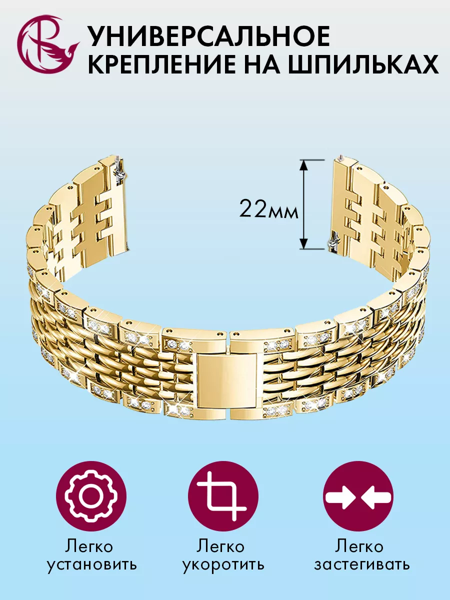 Ремешок для часов PARASMART Charm со стразами – это универсальный аксессуар, который подходит для любых моделей часов с шириной крепления 22 мм. Он обладает элегантным дизайном и привлекательным внешним видом благодаря инкрустации стразами.Этот ремешок выполнен из прочного и надежного металла, что обеспечивает долгую службу и устойчивость к повреждениям. Крепление на шпильках гарантирует простоту установки и надежную фиксацию на корпусе ваших часов.Регулируемая длина ремешка позволяет подстроить его под вашу индивидуальную потребность, обеспечивая комфортное ношение. Это делает его идеальным выбором как для смарт-часов, так и для наручных часов.Благодаря своей универсальности, этот ремешок подходит для различных стилей одежды и событий. Он придаст вашим часам изысканный вид и добавит шик в ваш образ.Если вы хотите придать своим часам новый облик и выразить свою индивидуальность, то металлический браслет PARASMART со стразами – отличный выбор. Позвольте себе насладиться комфортом и стилем с этим прекрасным аксессуаром.