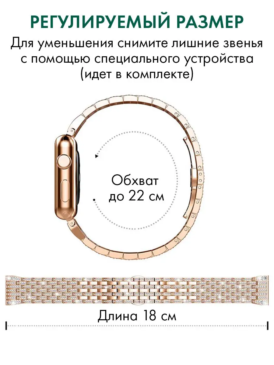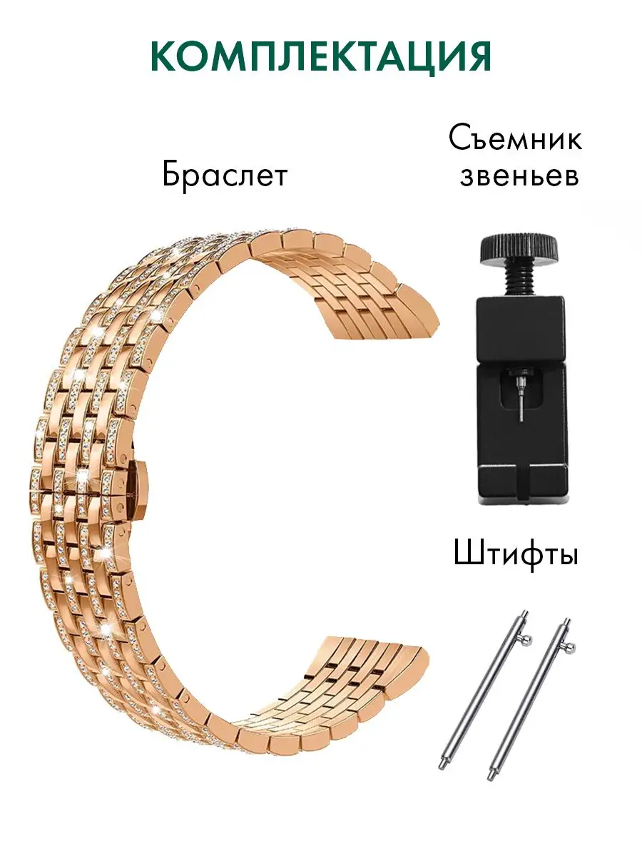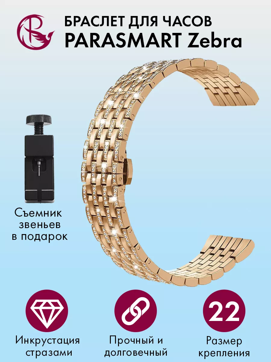 Ремешок для часов PARASMART со стразами – это универсальный аксессуар, который подходит для любых моделей часов с шириной крепления 22 мм. Он обладает элегантным дизайном и привлекательным внешним видом благодаря инкрустации стразами.Этот ремешок выполнен из прочного и надежного металла, что обеспечивает долгую службу и устойчивость к повреждениям. Крепление на шпильках гарантирует простоту установки и надежную фиксацию на корпусе ваших часов.Регулируемая длина ремешка позволяет подстроить его под вашу индивидуальную потребность, обеспечивая комфортное ношение. Это делает его идеальным выбором как для смарт-часов, так и для наручных часов.Благодаря своей универсальности, этот ремешок подходит для различных стилей одежды и событий. Он придаст вашим часам изысканный вид и добавит шик в ваш образ.Если вы хотите придать своим часам новый облик и выразить свою индивидуальность, то металлический браслет PARASMART со стразами – отличный выбор. Позвольте себе насладиться комфортом и стилем с этим прекрасным аксессуаром.