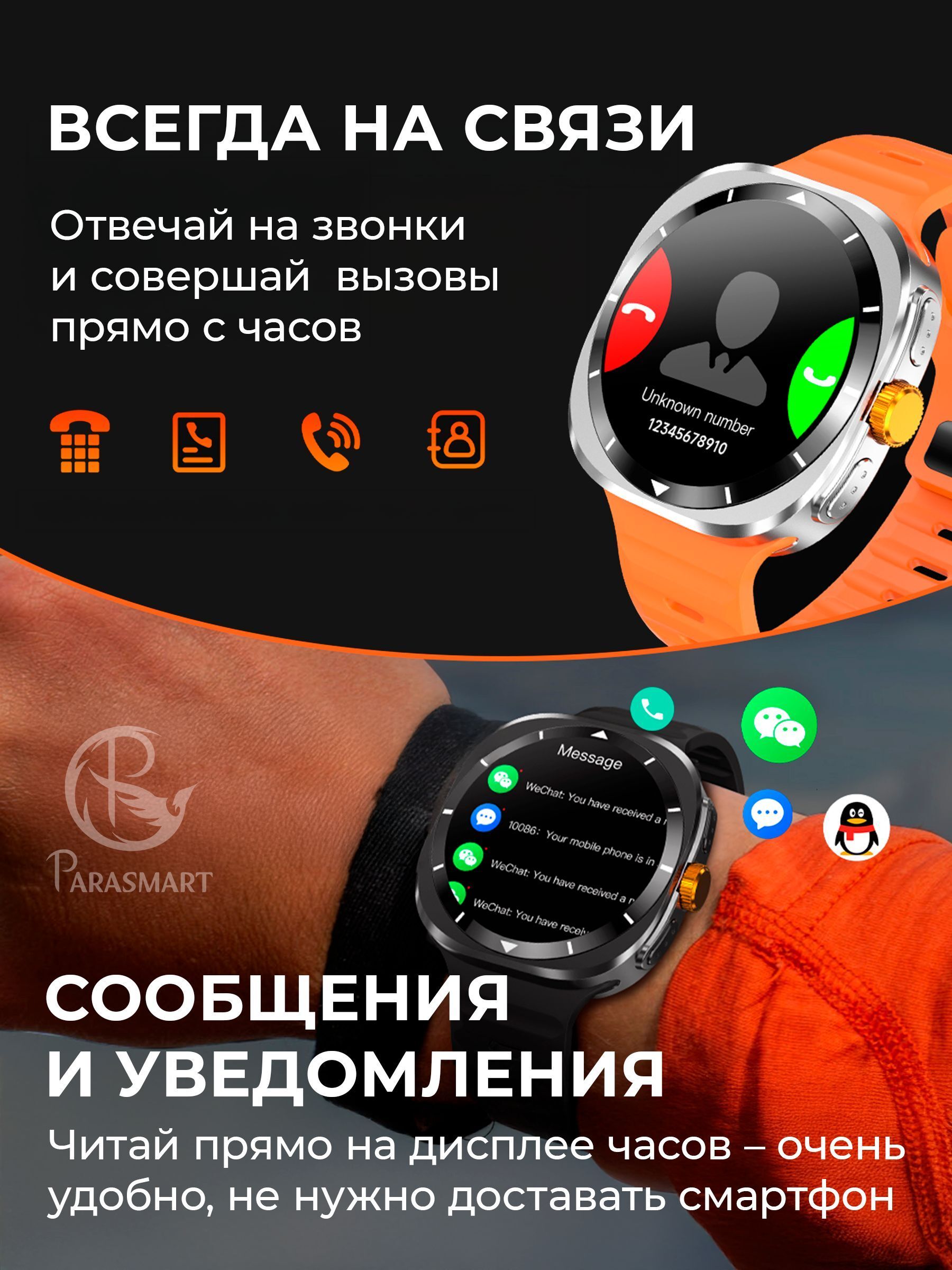 Smart watch поддерживают телефонные звонки и сообщения, это хороший подарок на 23 февраля, 8 марта и день Валентина.