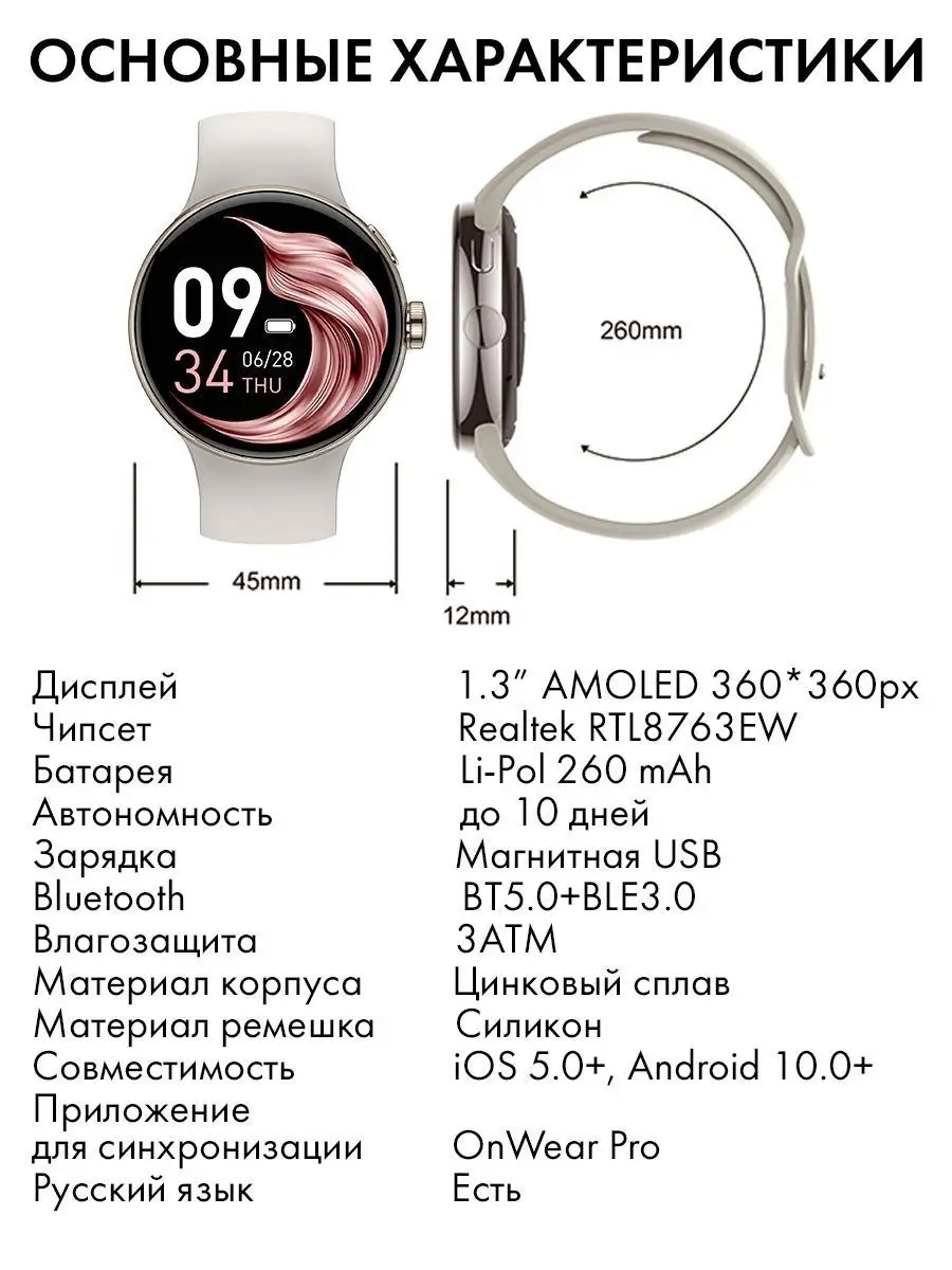 Эти смарт часы с AMOLED дисплеем – идеальный выбор для тех, кто ценит стиль и функциональность. Они не только подчеркивают индивидуальность, но и становятся незаменимым помощником в повседневной жизни. Прочный металлический корпус и удобный ремешок обеспечивают комфорт и надежность, а яркий сенсорный экран гарантирует четкость изображения. Встроенные динамик и микрофон HD качества позволяют использовать часы как гарнитуру, что делает их отличным подарком на день рождения для мужчин и женщин. Эти умные часы оснащены спортивным трекером, поддерживающим различные виды тренировок, шагомером и будильником. Модуль управления плеером и камерой смартфона добавляет удобства, а функция антипотеряшки поможет быстро найти телефон. Приложение погода всегда подскажет, как одеться, а фитнес браслет измеряет пульс и уровень кислорода в крови, мониторит сон, что делает его незаменимым для поддержания здоровья. Синхронизация с приложением OnWear Pro позволяет фиксировать и сохранять все показатели. Часы совместимы с устройствами на андроид и iOS, что делает их универсальным решением для всех пользователей. Для женщин предусмотрена функция календаря физиологических циклов, а библиотека циферблатов позволяет настроить внешний вид под настроение. Эти смарт часы – отличный подарок, который порадует как мужчину, так и женщину. Они подойдут для любого случая, будь то подарок парню или девушке, и станут незаменимым аксессуаром в повседневной жизни. Смарт часы – это не просто гаджет, это стильный и функциональный аксессуар, который подчеркнет индивидуальность и станет надежным помощником в любой ситуации. Независимо от того, ищете ли вы часы мужские наручные или женские, устройства PARASMART часы станут идеальным выбором. Они подойдут как подарок подруге или другу, и станут отличным дополнением к любому образу. Smart Watch Moon – это не просто аксессуар, это ваш личный помощник, который всегда под рукой.