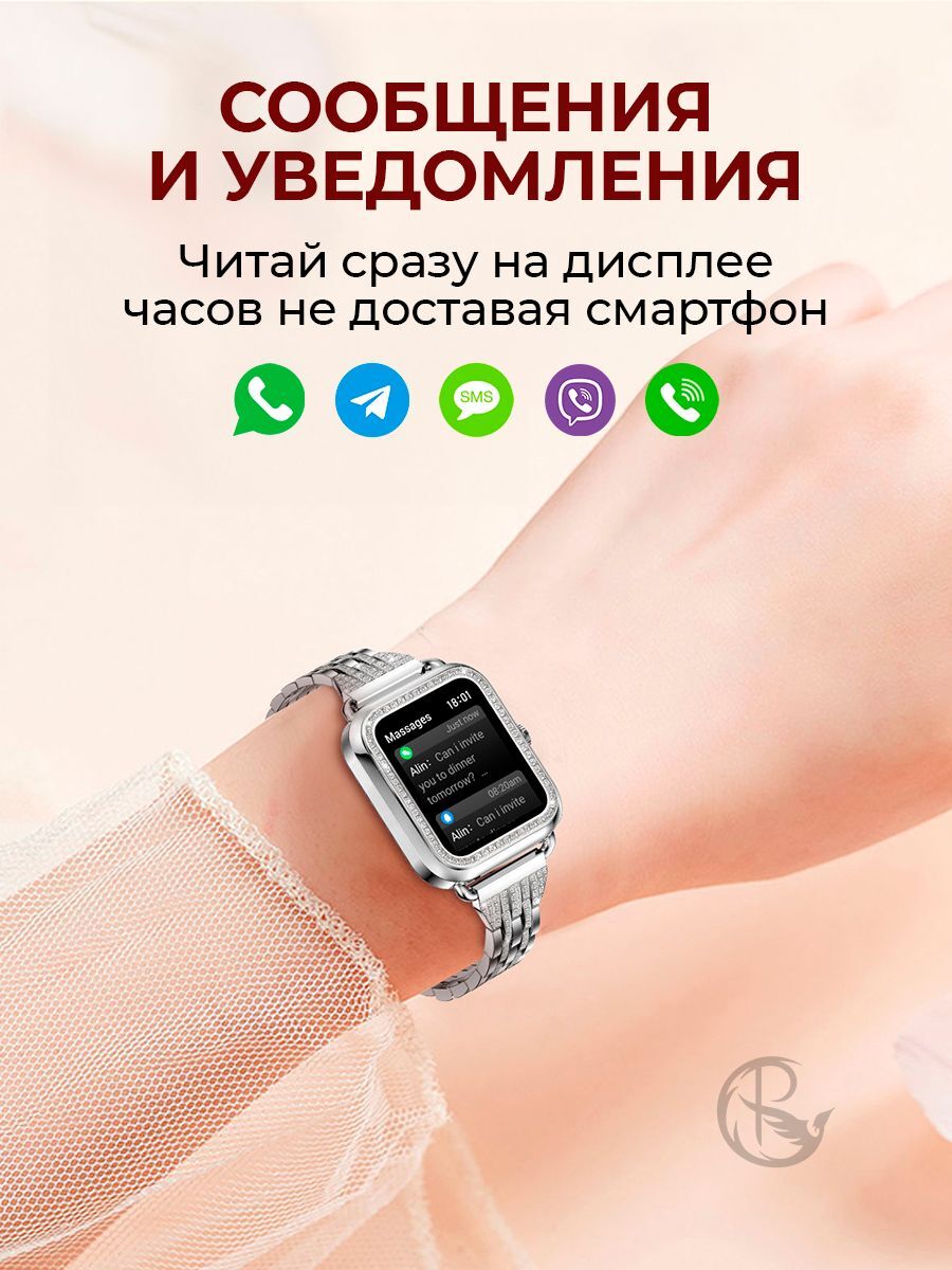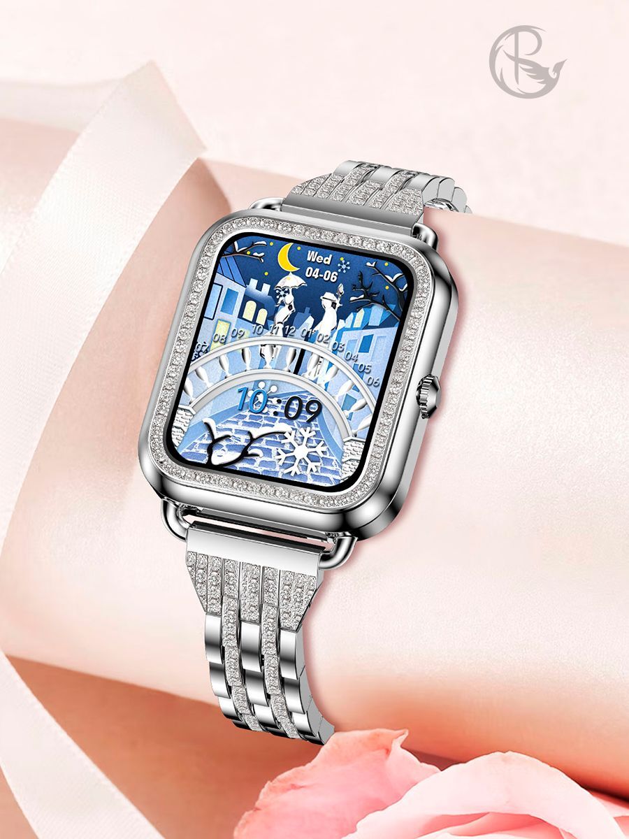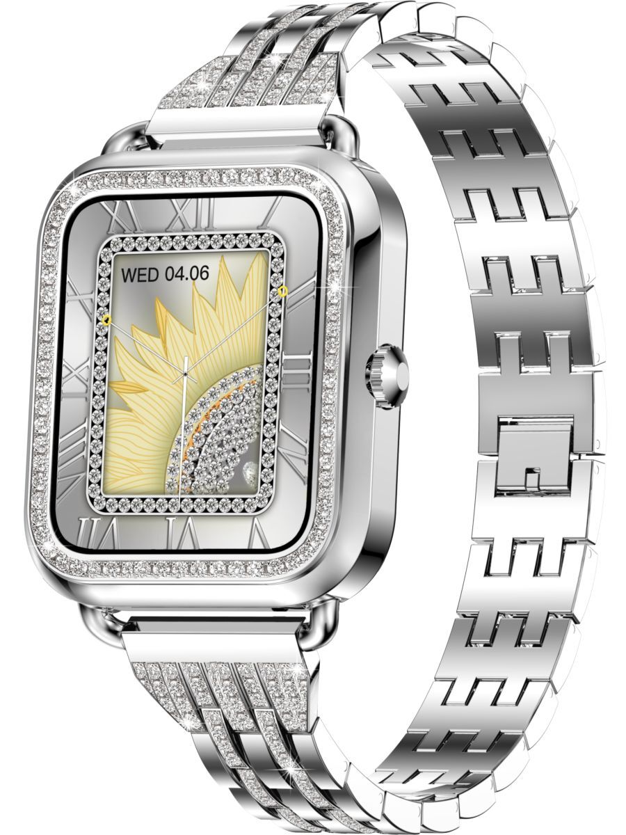 Смарт часы PARASMART Asteria i68 (блочный браслет со стразами, серебристый)